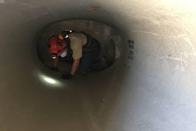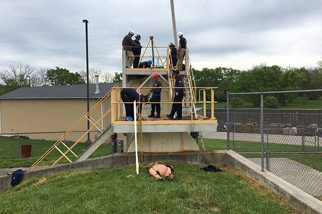 With regard to the possible hazards, a water supply will be identified and a decontamination shelter will be deployed as needed. Tripods, AHD’s, rope rescue packages and patient packaging equipment will be selected according to the confined space configuration. All team members will be stand-by ready to enter the confined space with class III harnesses and the appropriate personal protective equipment.